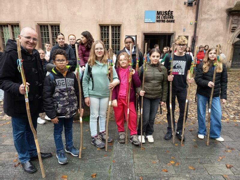 Pour nous préparer à recevoir l’onction d’huile jubilaire, nous avons assisté à la messe à St Pierre-le-Vieux, animée par les jeunes de la chorale Shalom de Wittisheim, nous avons été envoyés en équipes avec notre bâton de pèlerin, pour découvrir le symbole de l’huile, dans la Bible et dans la vie chrétienne grâce à des énigmes et des temps de réflexion. La pause de midi, au collège St Etienne nous a permis de reprendre des forces avant la visite du musée de l’Oeuvre de Notre Dame.